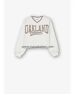 Sudadera cardada de manga larga y escote pico. Estampado frontal.