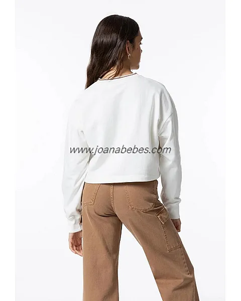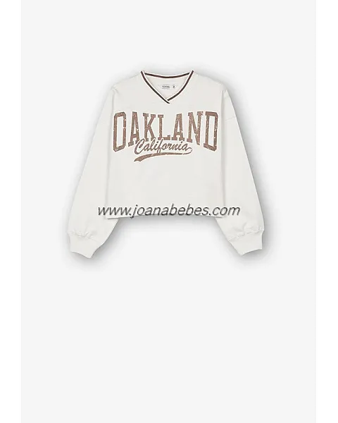 Sudadera cardada de manga larga y escote pico. Estampado frontal.