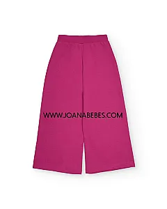 Pantalón ancho para niña en color fucsia, confeccionado en tejido suave y cómodo. Presenta un diseño de pierna recta con cintura elástica y cordón ajustable para mayor confort. Una prenda versátil y moderna, ideal para el día a día o para combinar con looks más arreglados.