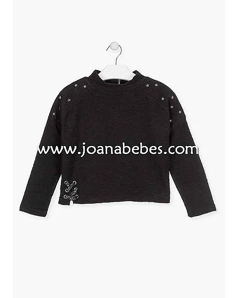 Camiseta de color gris con pieza en el bajo para chica. Camiseta de manga larga de punto....
