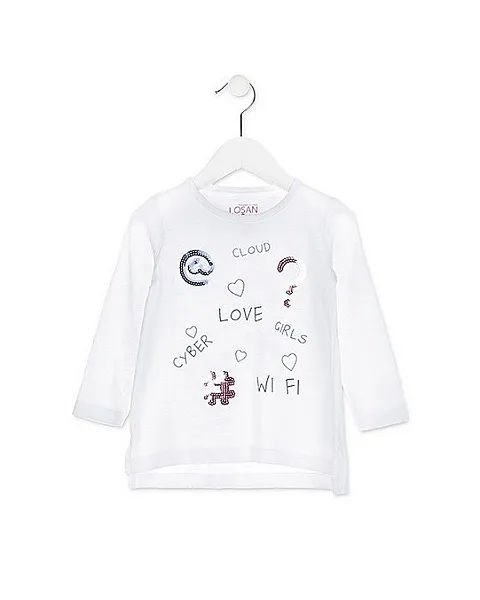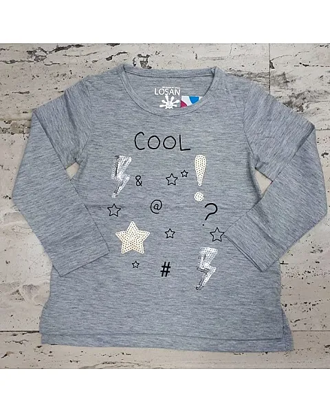 LOSAN Camiseta de punto de color GRIS CLARO para niña. Camiseta de manga larga de...