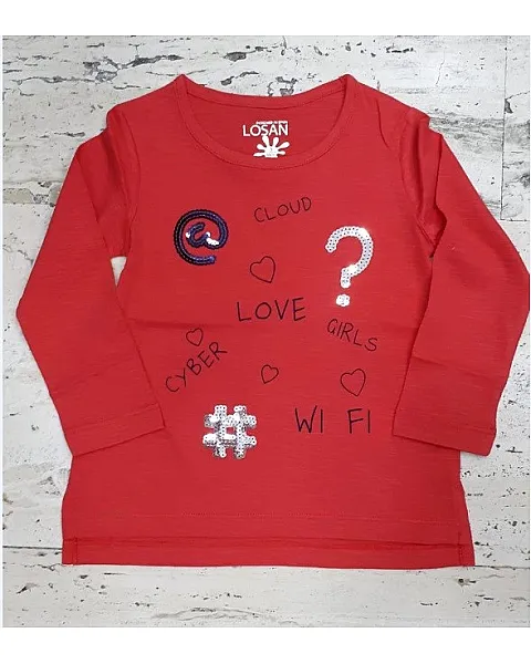 LOSAN Camiseta de punto de color ROJO ara niña. Camiseta de manga larga de algodón con...