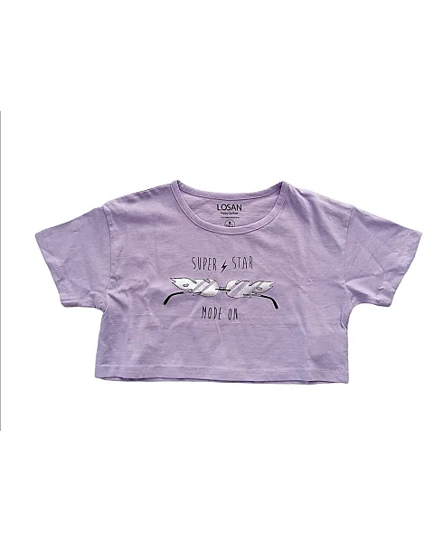 Camiseta corta tipo crop con estampado delantero para chica. Camiseta de manga corta. Cuello redondo. Tejido de algodón....