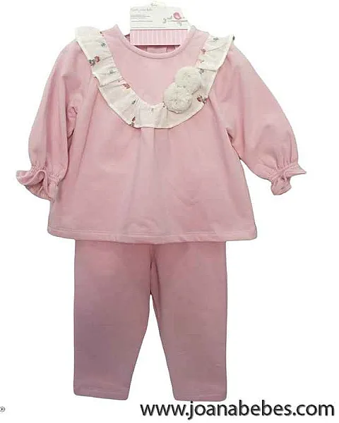Conjunto de camiseta de punto con parches y pantalón para bebé niña. Conjunto de camiseta de manga larga de punto de color rosa. Cuello...