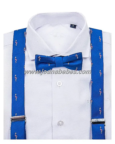 SET TIRANTES + PAJARITA JACQUARD, AZULON CON ESTAMPADO DE FLAMENCOS