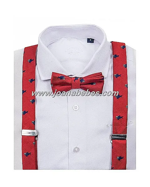 SET TIRANTES + PAJARITA JACQUARD, ROJA CON ESTAMPADO TIBURONES