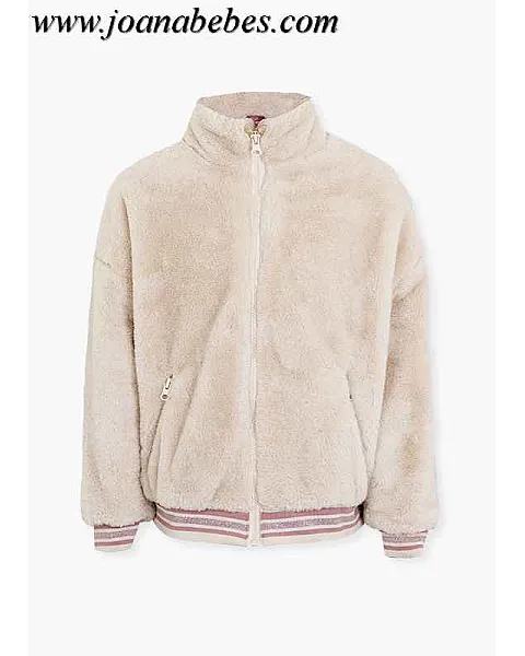 Cazadora en tejido de pelo para . Cazadora con cierre delantero con cremallera. Puños y bajo en tejido de canalé de rayas. Bolsillos...