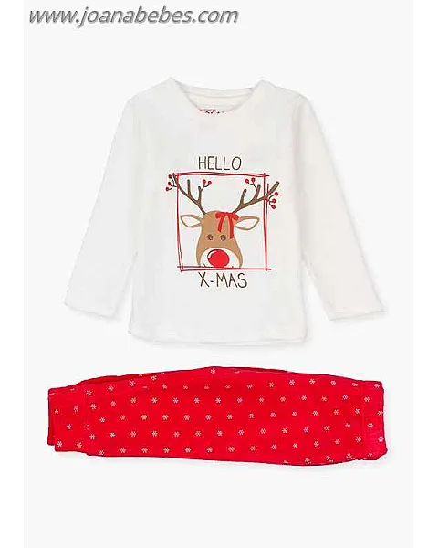 Pijama en tejido de terciopelo para niña. Pijama de dos piezas. Camiseta manga larga y cuello redondo con estampado...
