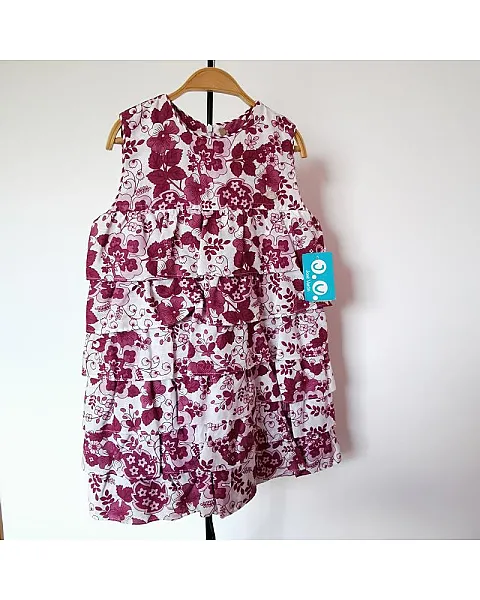 VESTIDO NIÑA VOLANTES ESTAMPADO ROSA Y COLOR VINO