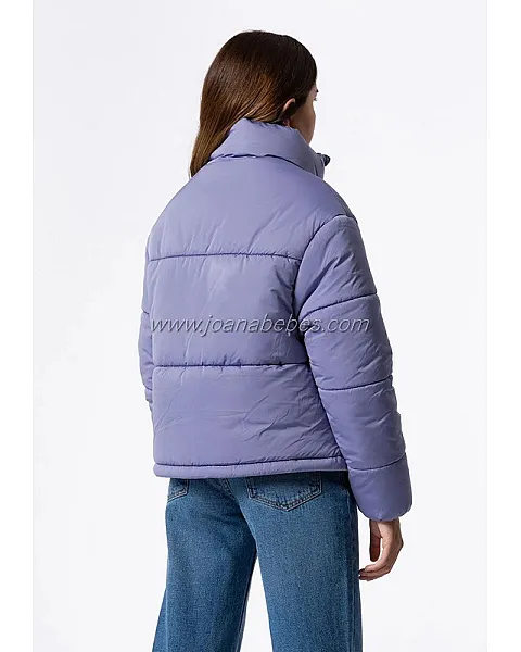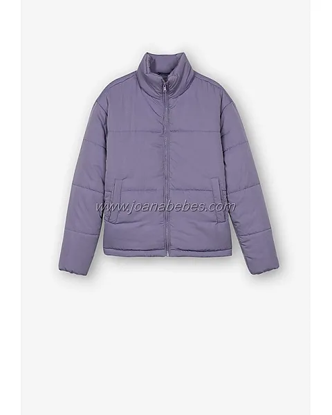 Cazadora de cuello subido y manga larga con elástico en el puño. Bolsillos laterales. Cierre frontal con cremallera.