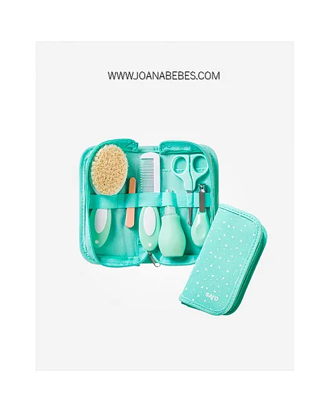 Completo neceser con todo lo necesario para el aseo del bebé en un práctico estuche con cremallera.
