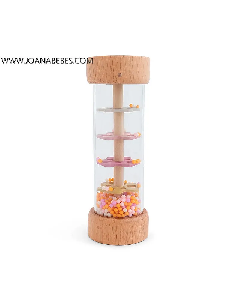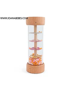 Este sonajero se convertirá en el juguete favorito de tu pequeño. Es tan relajante como hipnótico. Cuando lo giras, las pequeñas bolitas caen por el tubo y bajan poco a poco por cada separador, produciendo un sonido calmante similar a las gotas de lluvia.