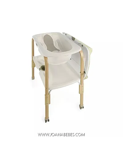 En la parte inferior dispone de una gran bandeja con compartimentos para poder colocar todo lo imprescindible de tu bebé y así tener a mano la ropita y todo lo necesario. Además, incluye una jarra de aclarado.