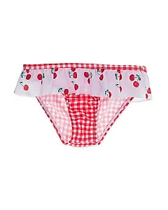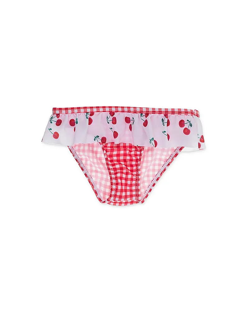 Braguita de baño de cuadritos de color MARINO para niña. Braguita de baño con volante con estampado de cerezas. Con forro....