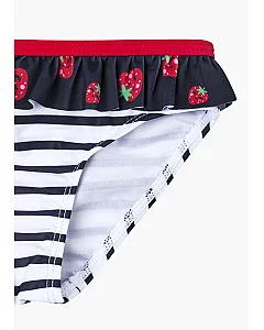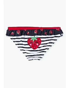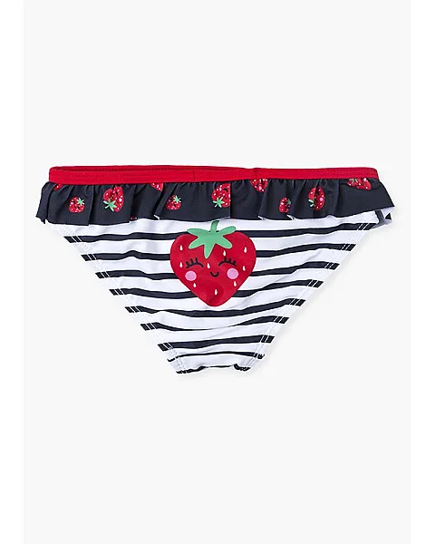 Braguita de baño con fresitas para niña. Braguita de baño de rayas con volante estampado en la cintura. Forro delantero y cintura...