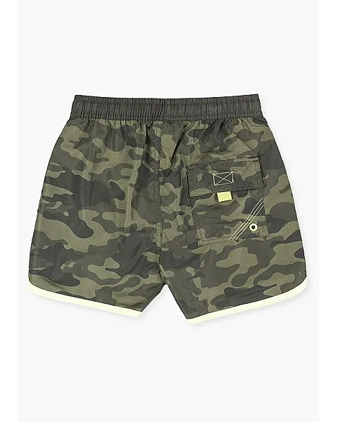 Bañador con bolsillo con solapa en la parte posterior para chico. Bañador de microfibra con estampado. Con cordón y cintura...