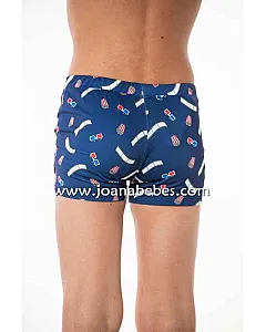 Bañador ajustado rayas con cordón personalizado y parche de goma spagnolo en el bajo.