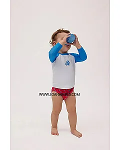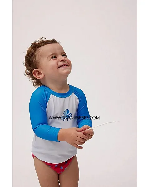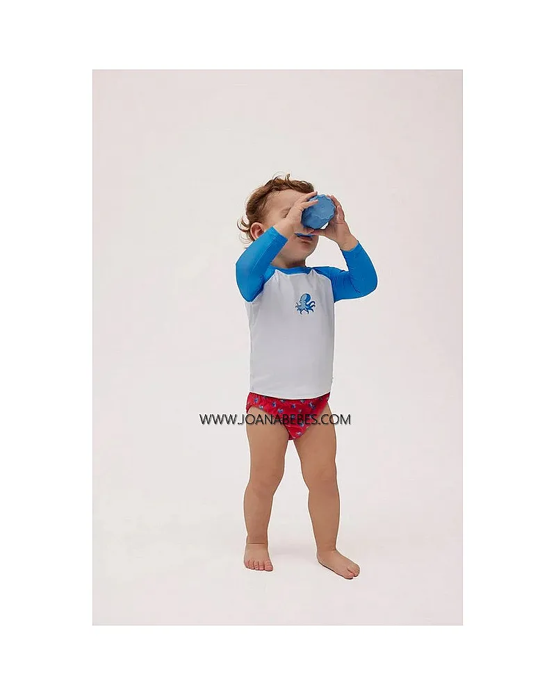 Camiseta de baño de bebé con diseño de pulpo en la parte delantera y mangas azules