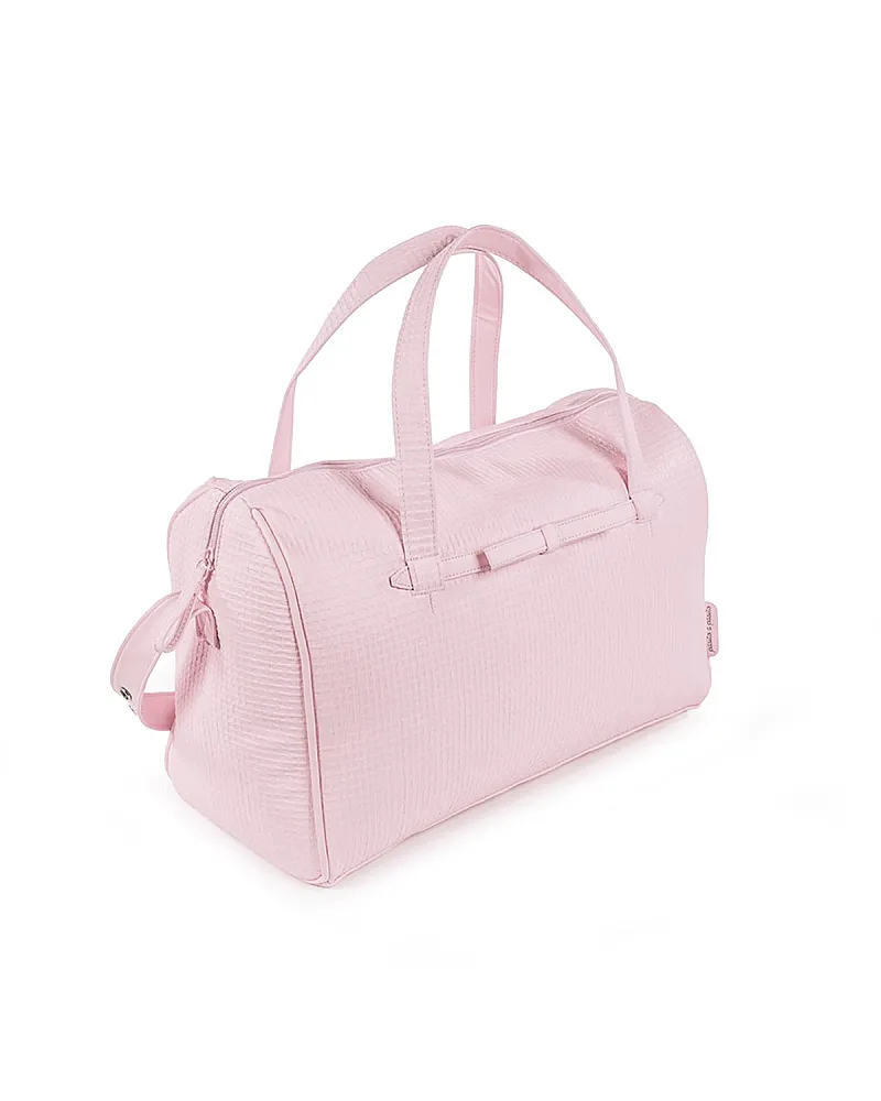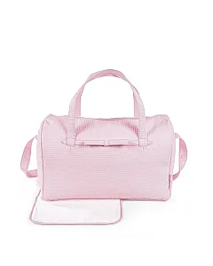 Bolsa canastilla o bolsa para colgar en el carrito de bebé en color rosa, pertenece a la colección Nido Grabado de Pasito a Pasito. Realizado 100% Pu con un bonito grabado, donde los cuadrados son los protagonistas. Se convertirá en un producto imprescindible en tus salidas, ya que es un bolso elegante, muy practico y de gran capacidad, para llevar todo lo que necesite tu bebé. Incluye cambiador.