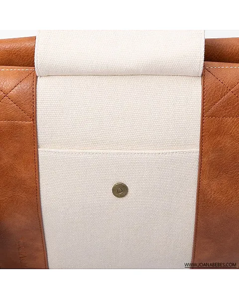 3 bolsillos exteriores: 1 bolsillo pequeño con solapa de imán, 2 bolsillos laterales grandes con capacidad para el biberón, botella de agua, tarrito, toallitas.