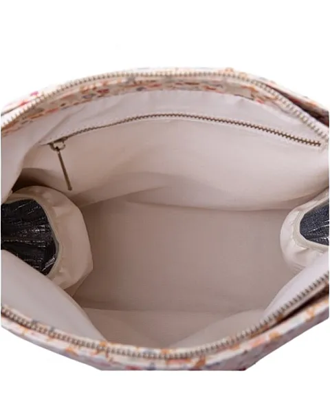 ideales para transportar de pie el biberón, papillero o tarrito sin que vuelque y 1 bolsillo con cremallera.