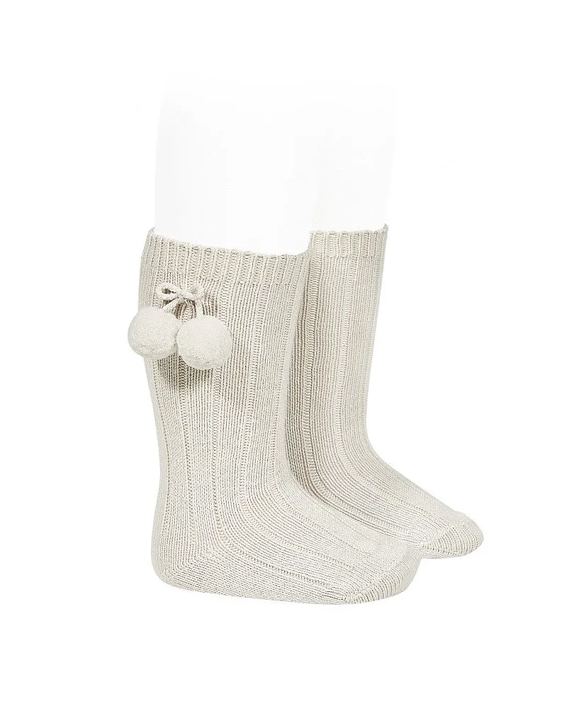 CALCETIN ALTO ACANALADO ALGODON CALIDO BORLAS