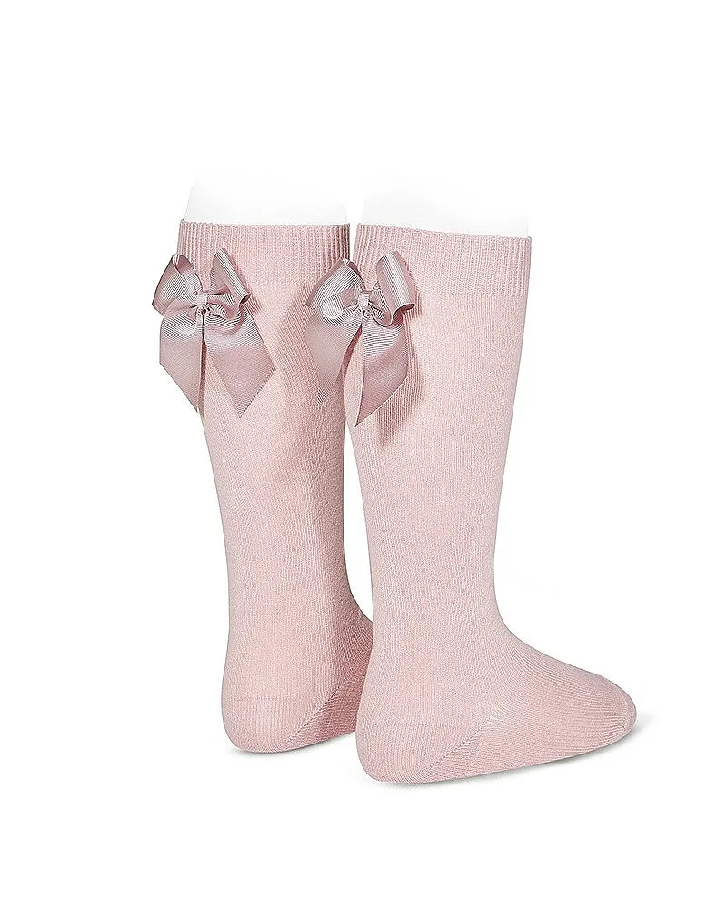 CALCETIN ALTO CON LAZO ROSA EMPOLVADO