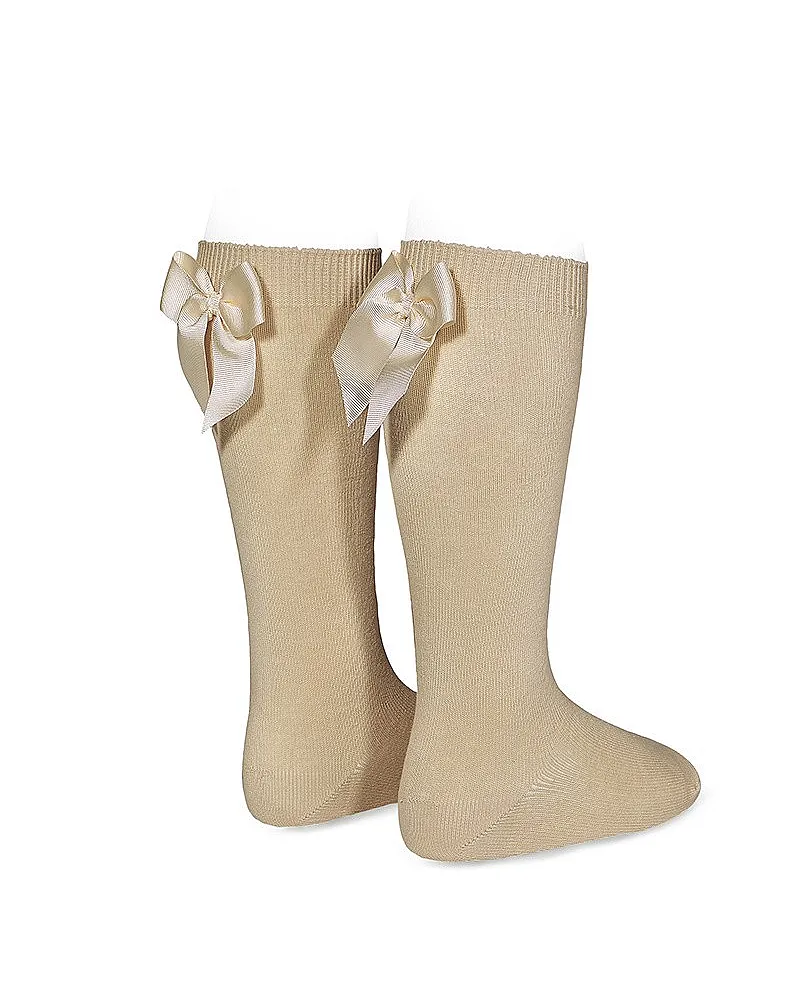 CALCETIN ALTO PUNTO LISO CON LAZO CAMEL