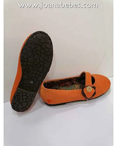 Caminito zapato con pulsera pana naranja (piel) fabricado en España.
