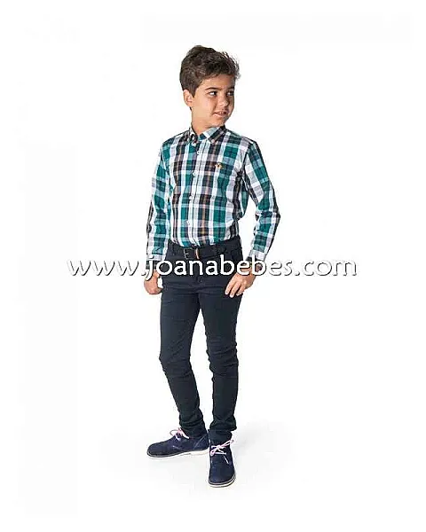 Camisa cuello boton popelin de cuadros para niño, de la firma  de moda infantil spagnolo