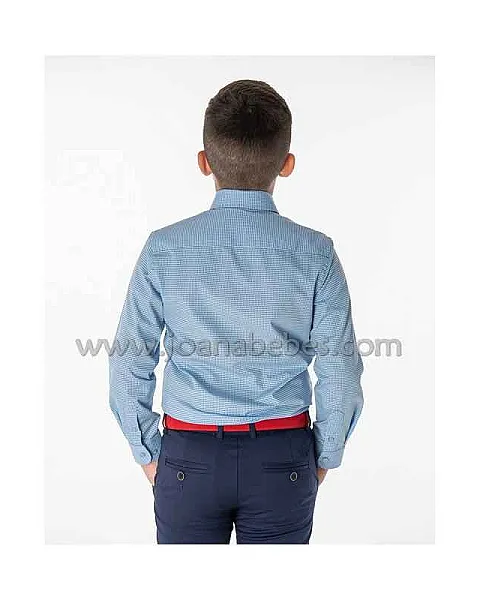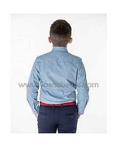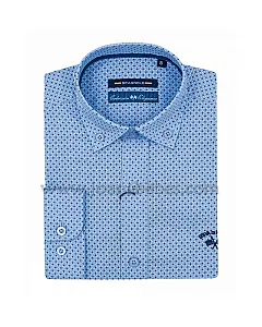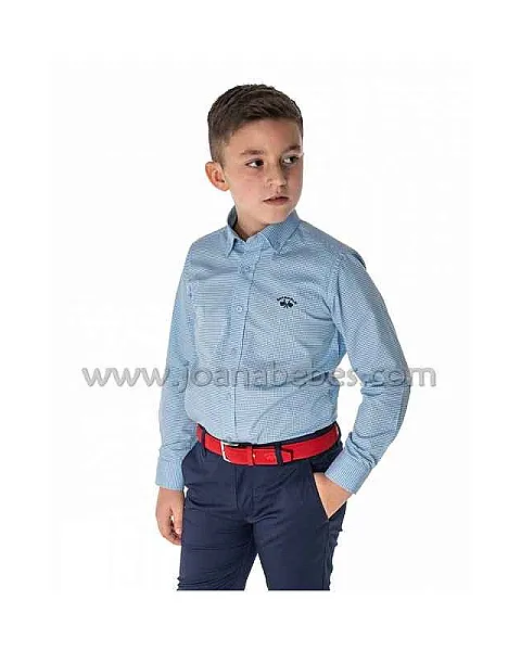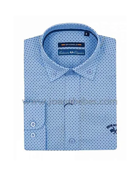Camisa manga larga cuello botón. Tejido oxford estampado 100% algodón con bordado bandera en el pecho a contraste.