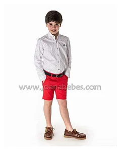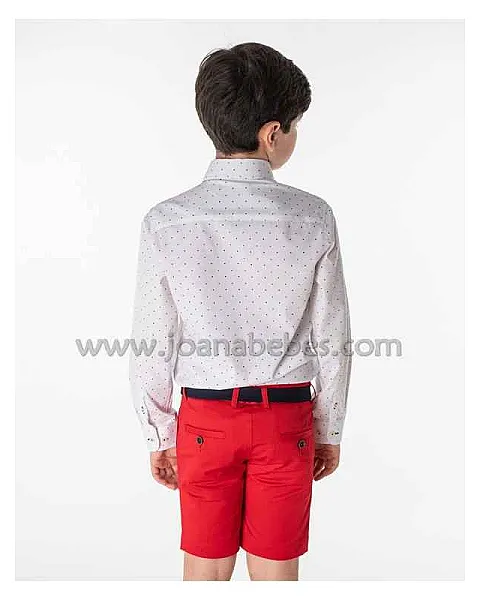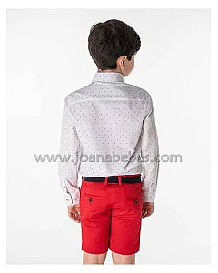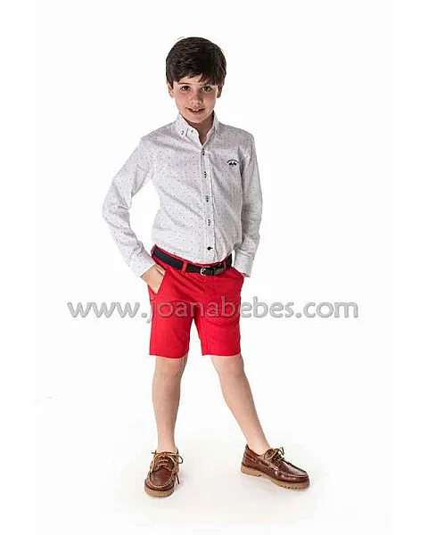 Camisa manga larga cuello botón. Tejido oxford estampado 100% algodón con bordado bandera en el pecho a contraste.