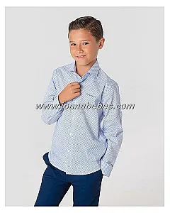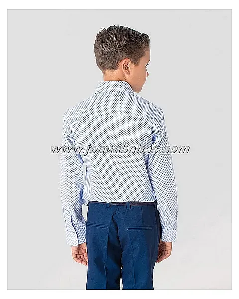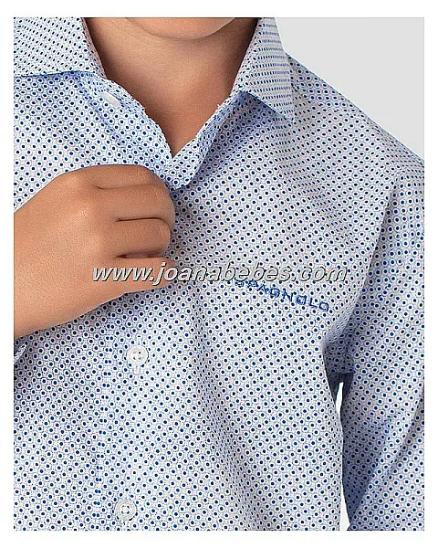 Camisa de manga larga con cuello cutaway y puños sencillos. Confeccionada en tejido popelin con estampado de lunares y bordado de letras Spagnolo en el pecho.