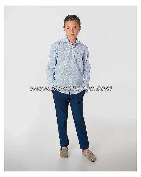 Camisa de manga larga con cuello cutaway y puños sencillos. Confeccionada en tejido popelin con estampado de aviones y bordado de letras Spagnolo...