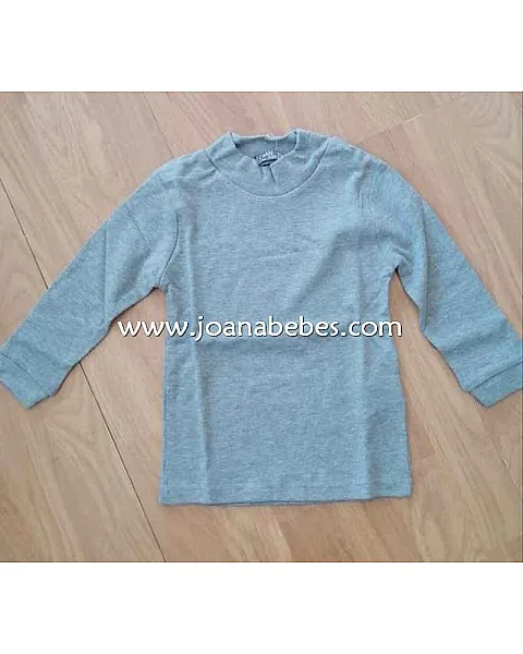 Camiseta básica cuello semicisne para niño. Camiseta básica de manga larga cuello semicisne de algodón con corte en puños.