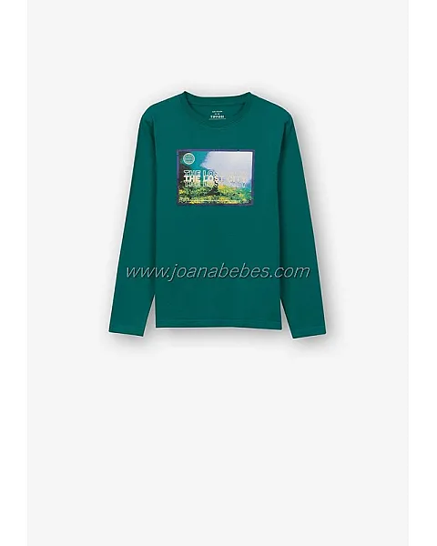 Camiseta de manga larga y cuello redondo. Estampado frontal.