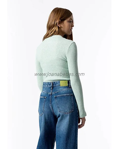 Camiseta de cuello perkins y manga larga con detalle de abertura.