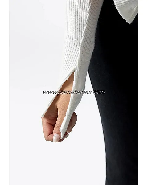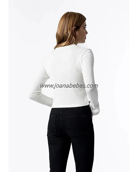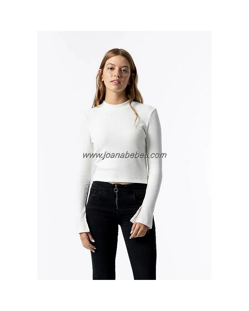 Camiseta de cuello perkins y manga larga con detalle de abertura.
