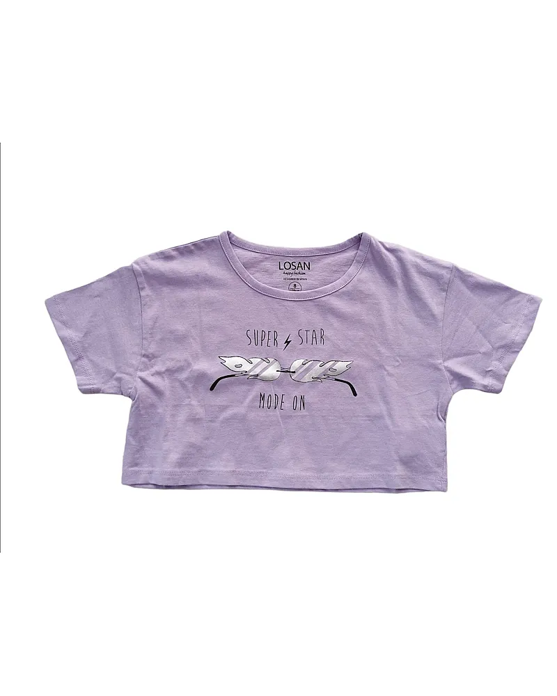 Camiseta corta tipo crop con estampado delantero para chica. Camiseta de manga corta. Cuello redondo. Tejido de algodón.