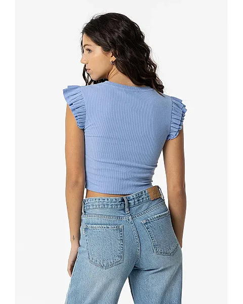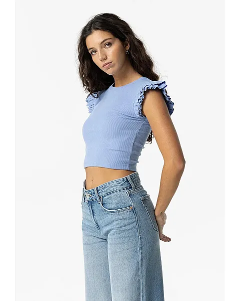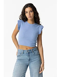 Camiseta con cuello redondo y manga corta con detalle de volante.