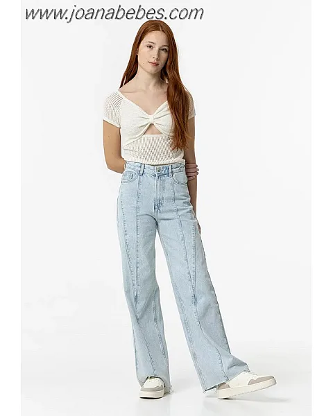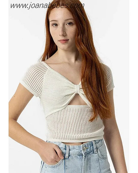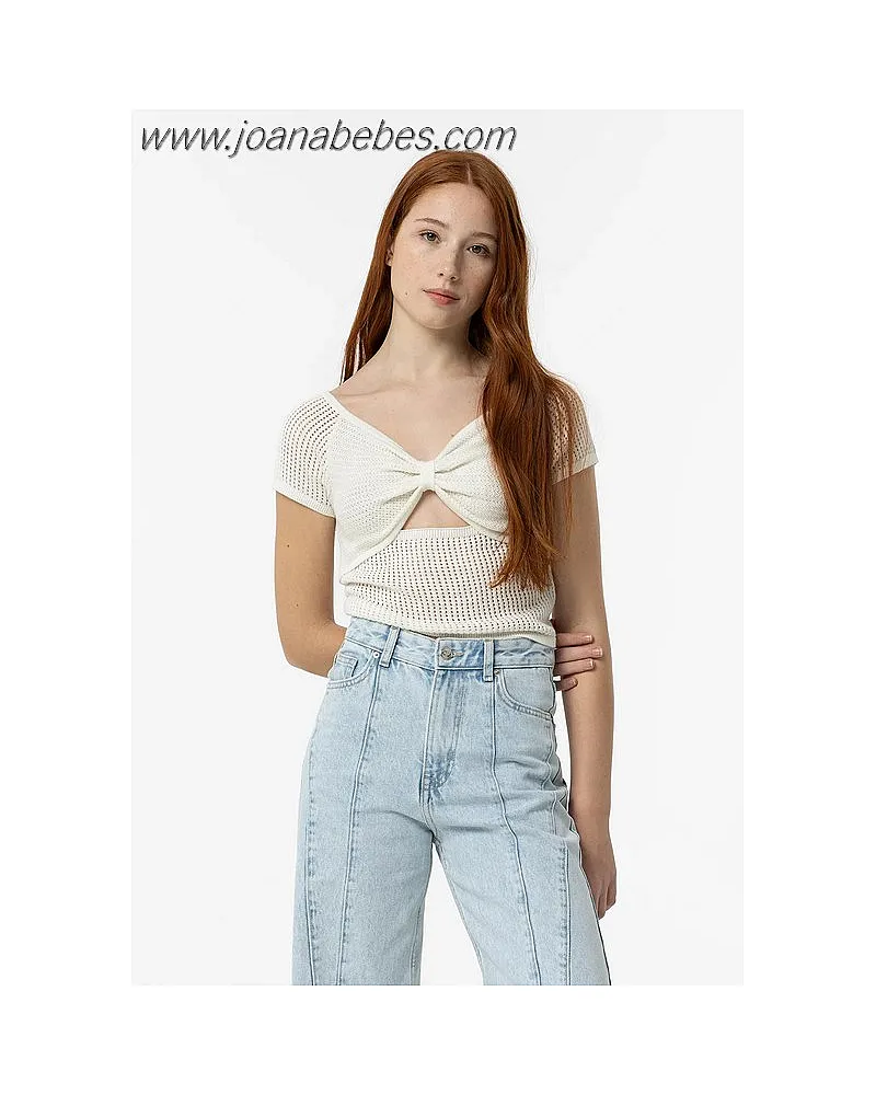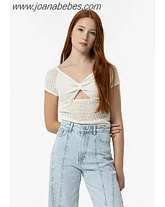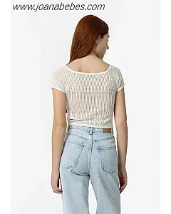 Jersey de punto con escote pico y manga corta. Detalle abertura frontal.