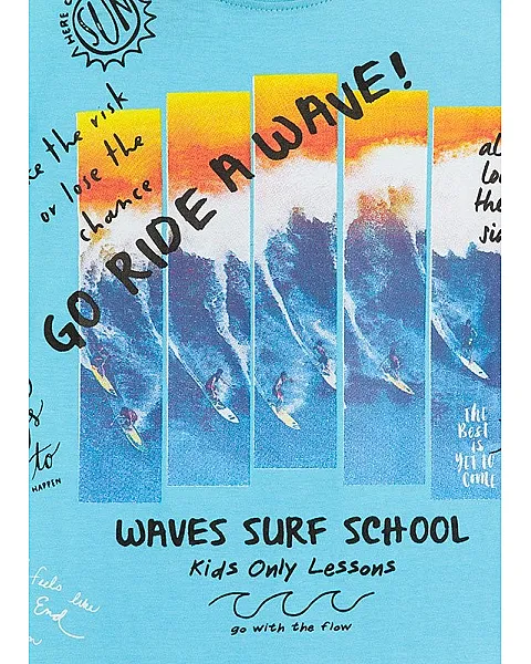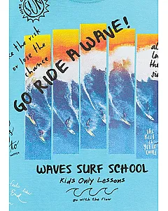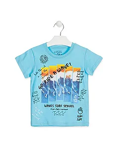 Camiseta con mensajes estampados para niño. Camiseta de manga corta con cuello redondo en tejido de canalé de color blanco. Estampado surfero...