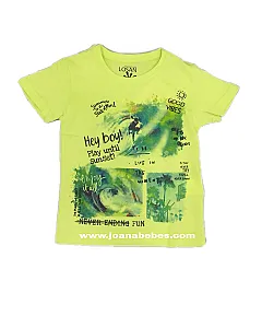 Camiseta con mensajes estampados para niño. Camiseta de manga corta con cuello redondo en tejido de canalé de color blanco. Estampado surfero en el delantero.