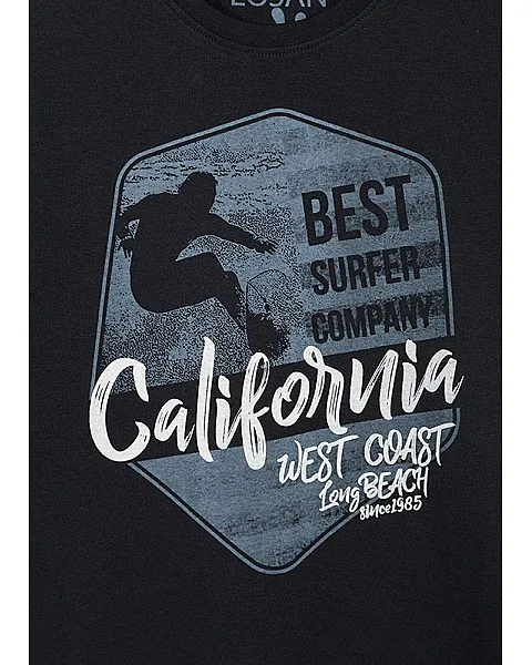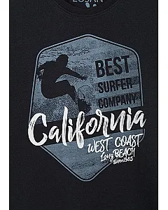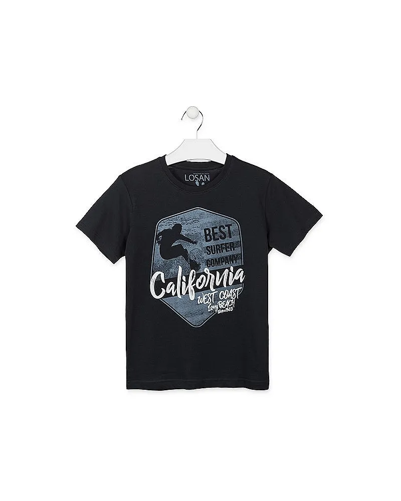 Camiseta surfera de manga corta de color verde para chico. Camiseta de punto con cuello redondo en tejido de canalé. Mensaje estampado en el...