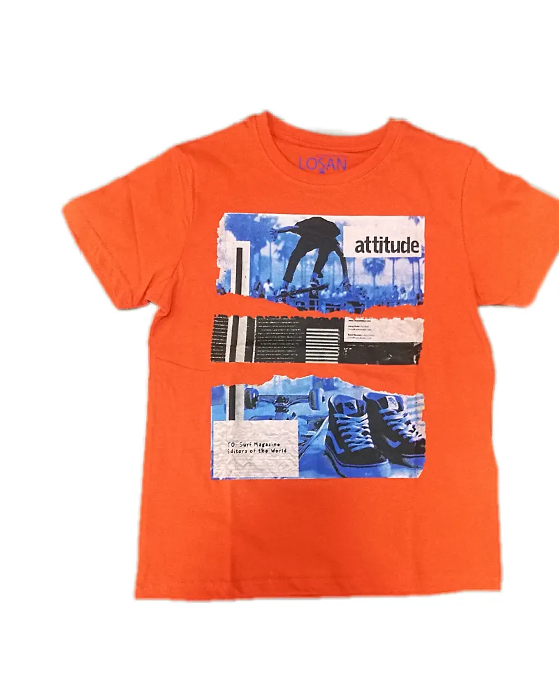 Camiseta de color blanca surfera para chico. Camiseta de manga corta en tejido de punto con cuello redondo en tejido de canalé....