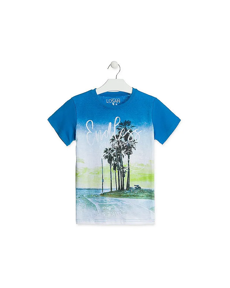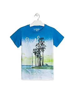 Camiseta de color royal con estampado para chico. Camiseta de punto de manga corta con cuello redondo en tejido de canalé....