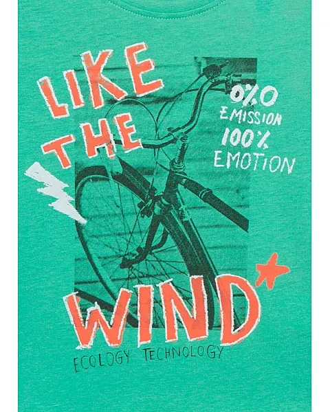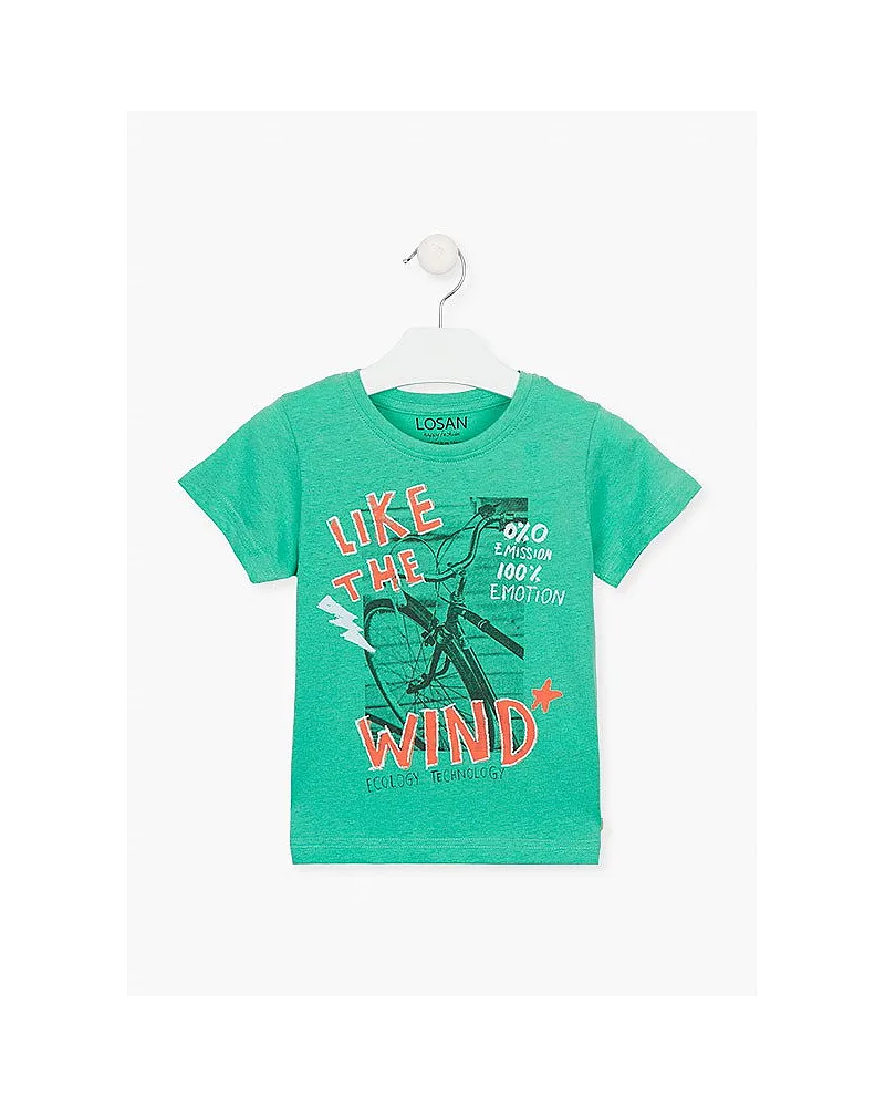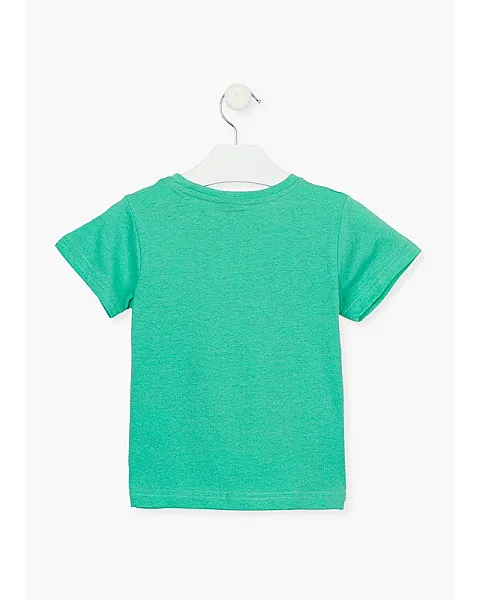 Camiseta con mensaje en la parte delantera para niño. Camiseta de punto. Manga corta y cuello redondo. Estampado fotográfico.