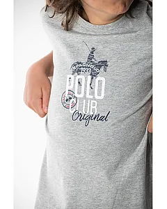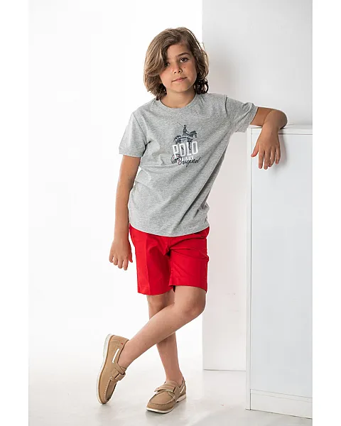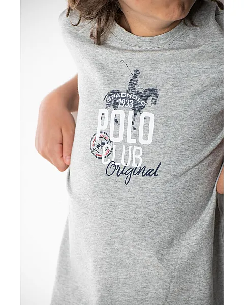 Camiseta de manga corta en punto mezcla 100% algodón, con estampado Polo Spagnolo centrado en el pecho.
