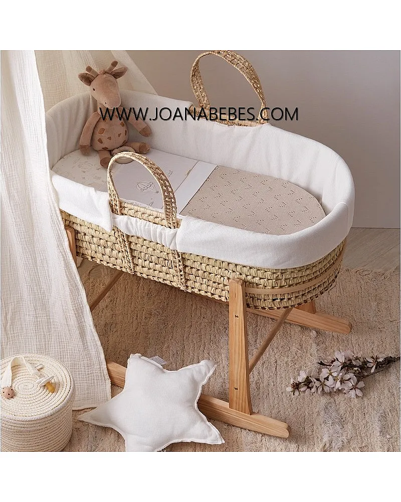 Capazo de mimbre para bebé con vestidura confeccionada con tejido muy suave para el bebé algodón premium.