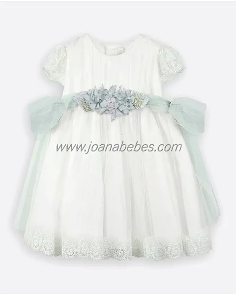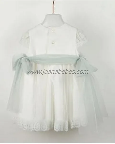 AMAYA VESTIDO BEBE EN TUL Y PUNTILLAS (CRUDO-VERDE)